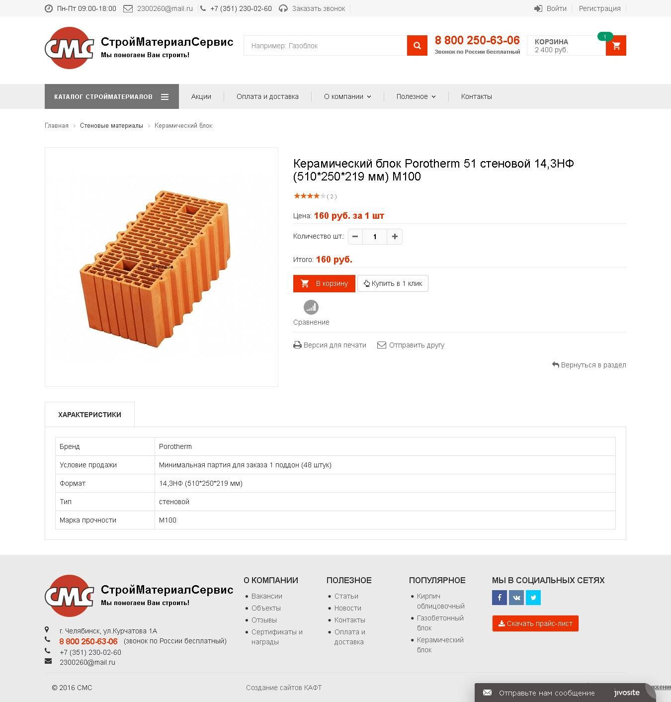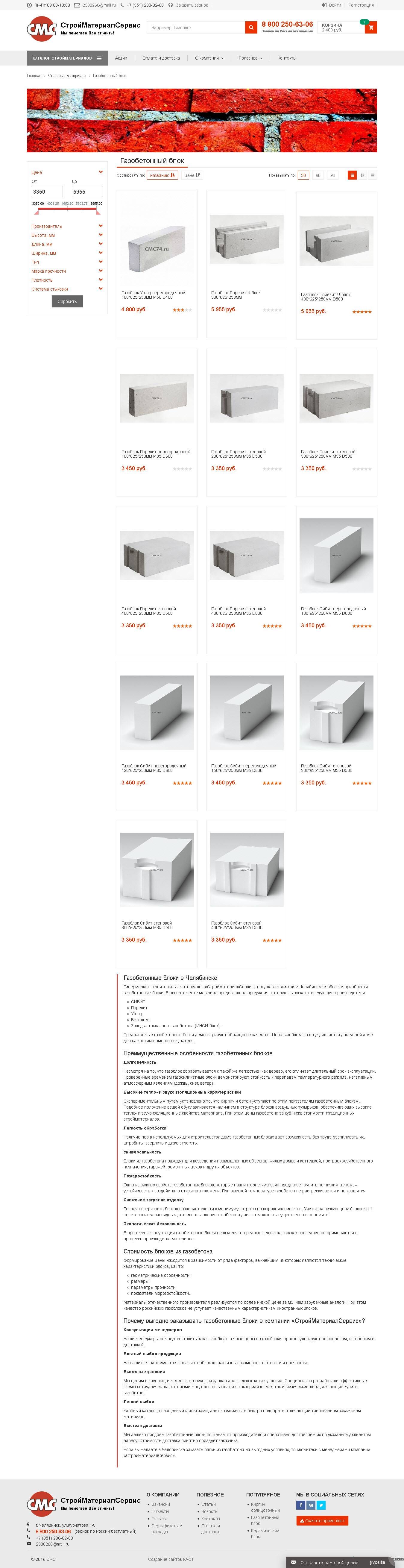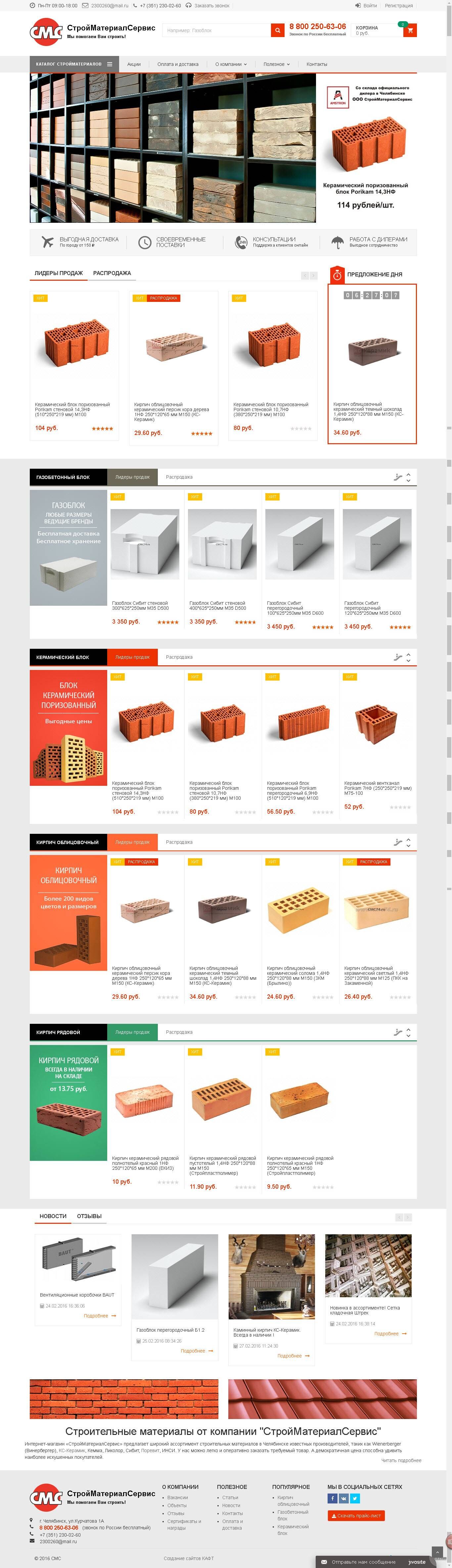 Интернет-магазин строительных материалов для компании "СтройМатериалСервис" разработан на платформе 1С-Битрикс:Управление сайтом, редакция "Малый бизнес".