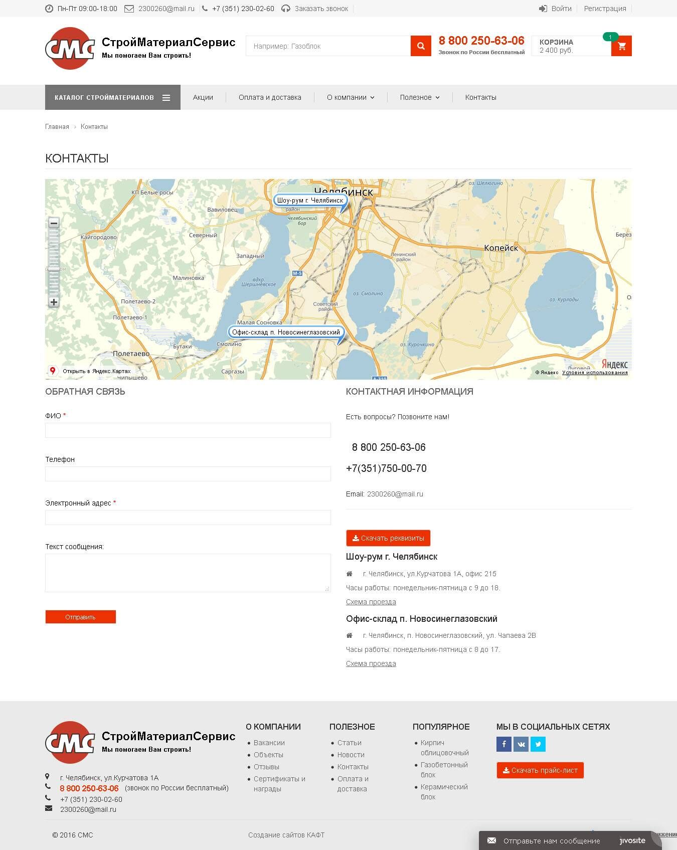 Для консультирования посетителей сайта подключен онлайн консультант, также есть форма заказа обратного звонка.