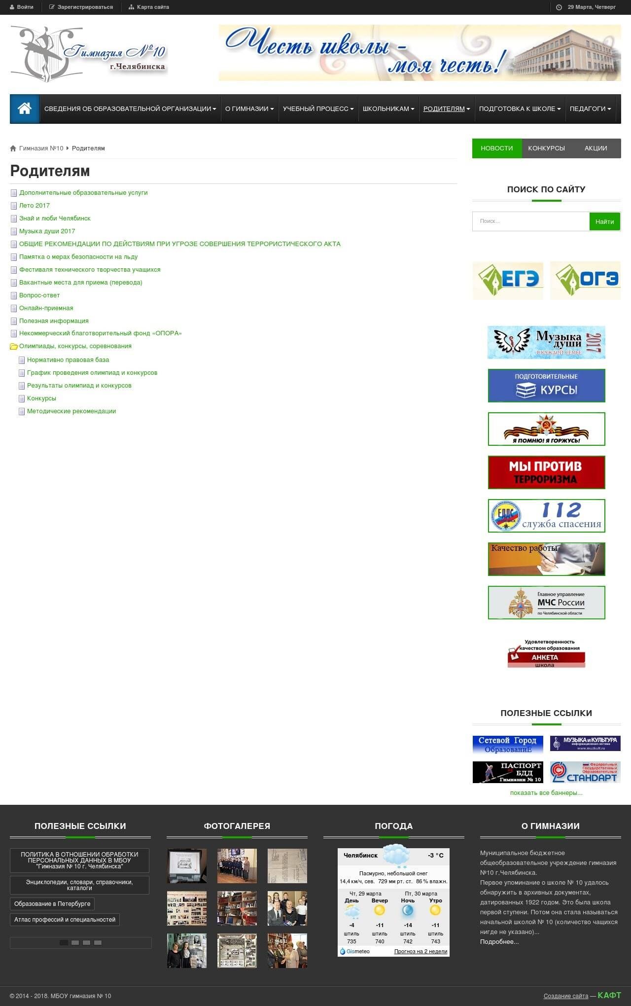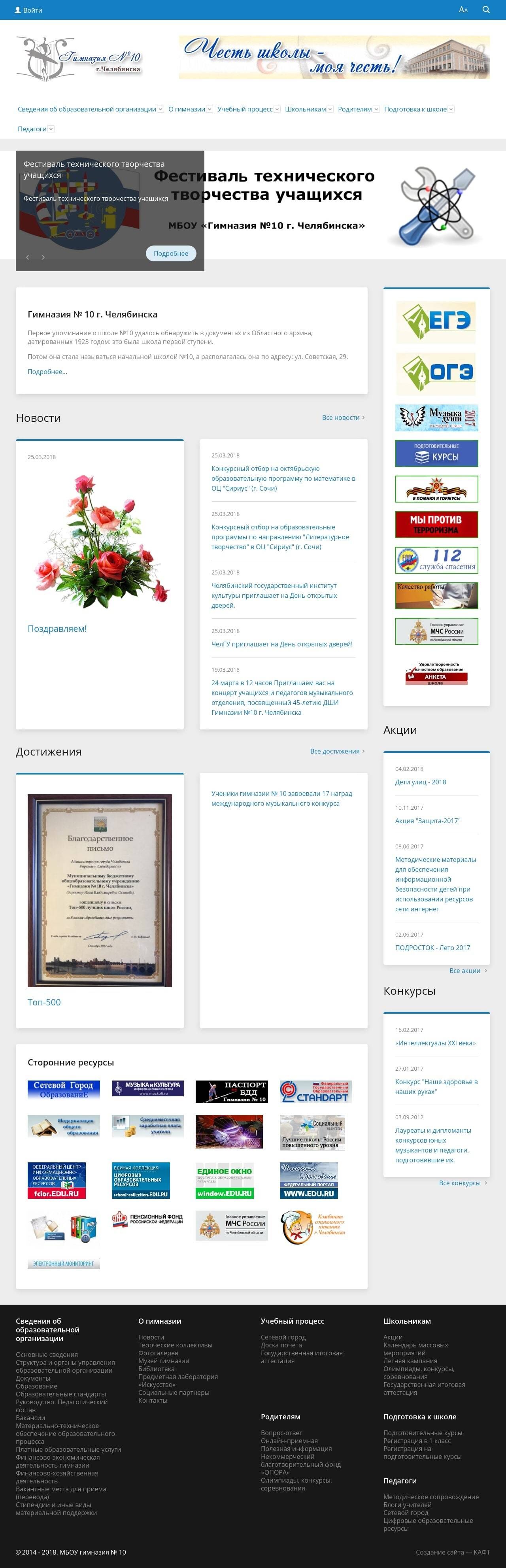 Корпоративный сайт для гимназии №10 г. Челябинска