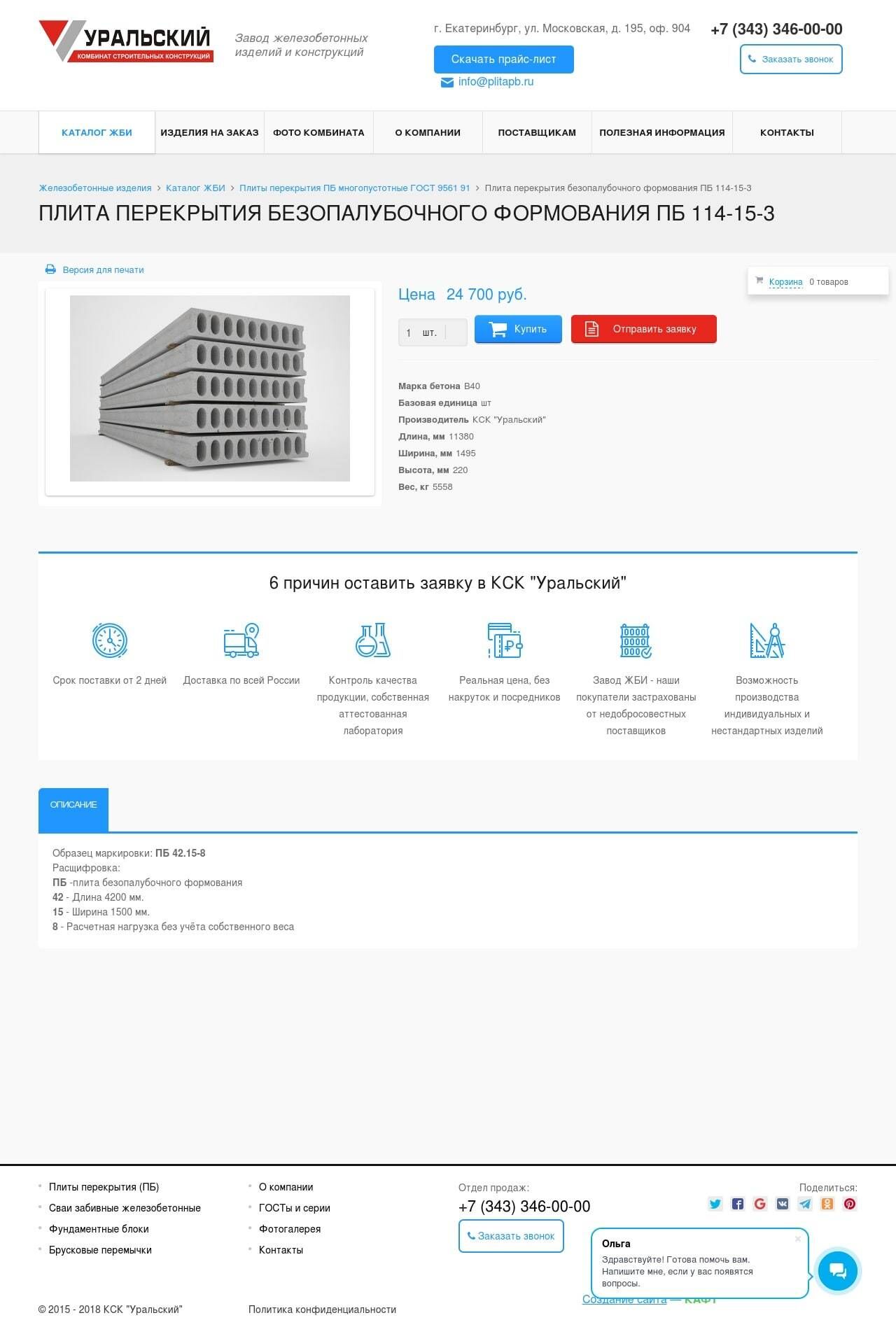 Корпоративный сайт для комбината строительных конструкций «Уральский» г. Екатеринбург. Компания производит плиты перекрытий. Основной задачей было создание каталога со всеми существующими позициями комбината без утяжеления структуры сайта. Поэтому даже при ограниченном ассортименте видов плит было решено разделить их на 2 группы. Это достаточно удобно для покупателя, который выбирает товар исходя из его ширины как основного параметра. Все выбранные позиции добавляются в корзину и можно сразу оформить предварительный заказ. Сайт разработан на платформе 1С-Битрикс: Управление сайтом, редакция "Малый бизнес". К тому же сайт сразу создавался с учетом его дальнейшего активного продвижения - информация оптимизирована, навигация проста и удобна.