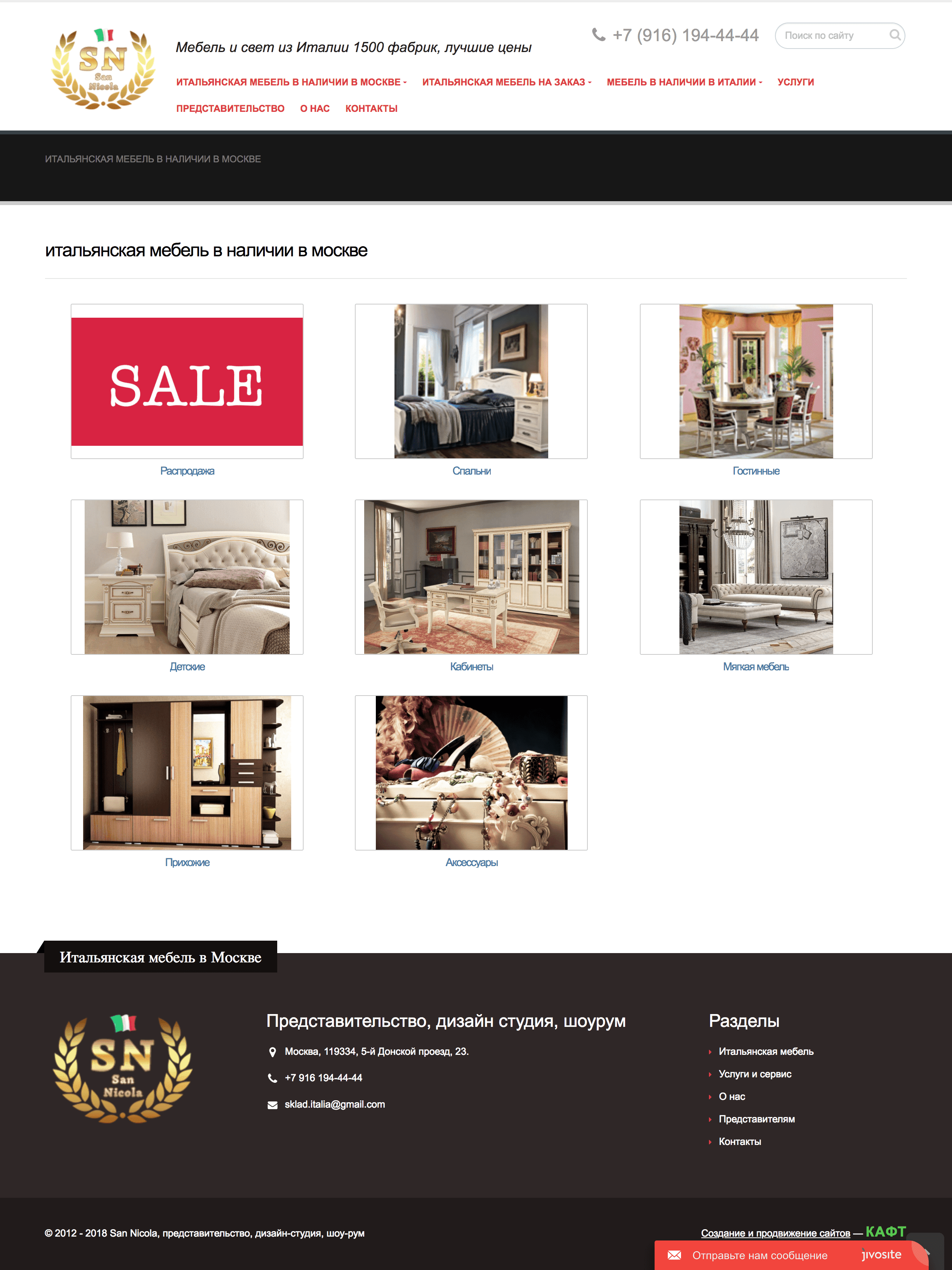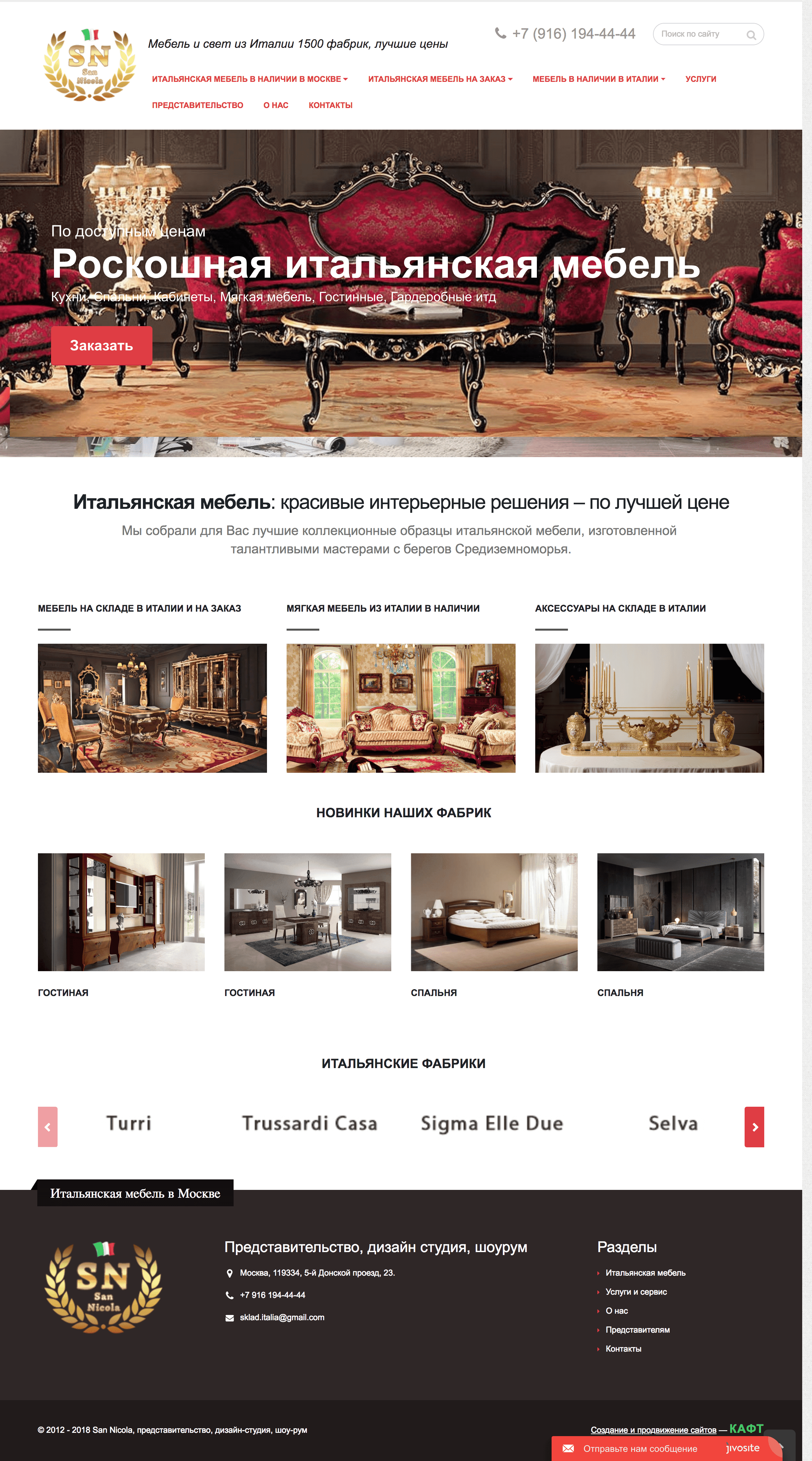Корпоративный сайт для компании, занимающейся прямыми поставками итальянской мебели более чем с 1500 фабрик. Широкий ассортимент мебели был размещен в удобном каталоге. Детальная карточка товара позволила визуально представить всю красоту итальянской мебели с помощью дополнительного многофункционального слайдера.