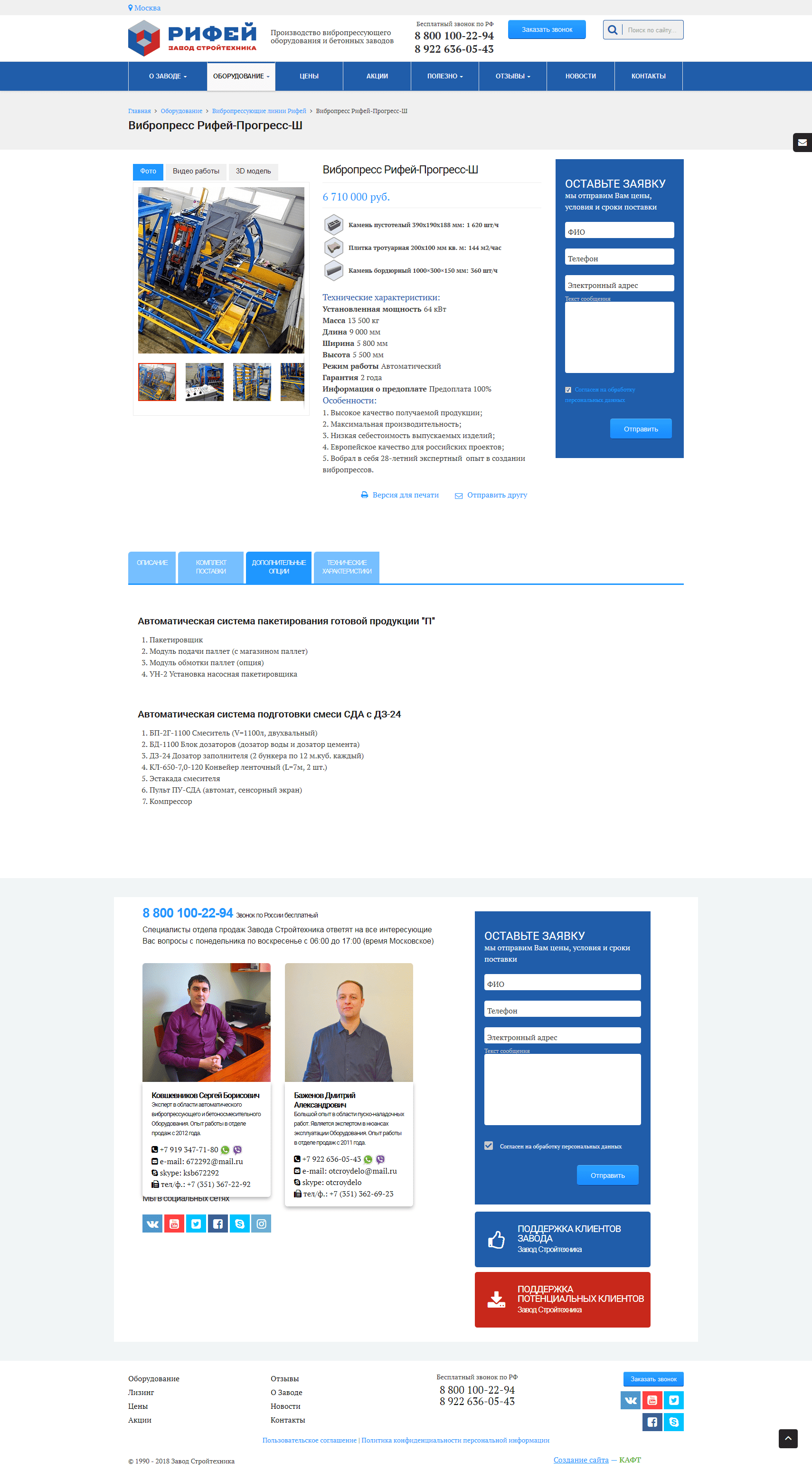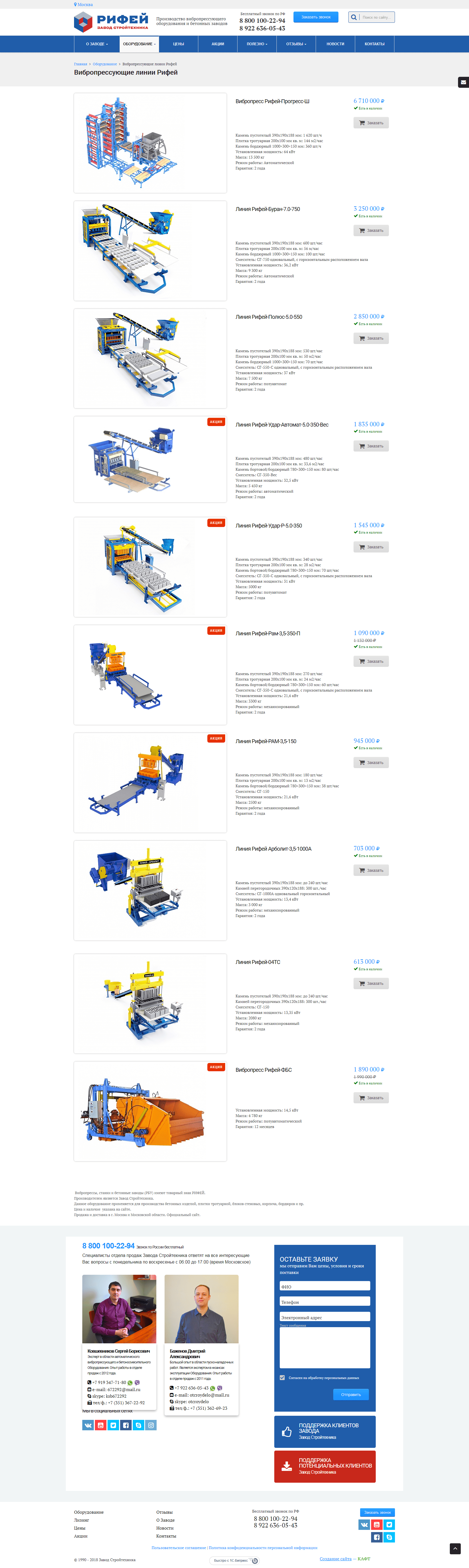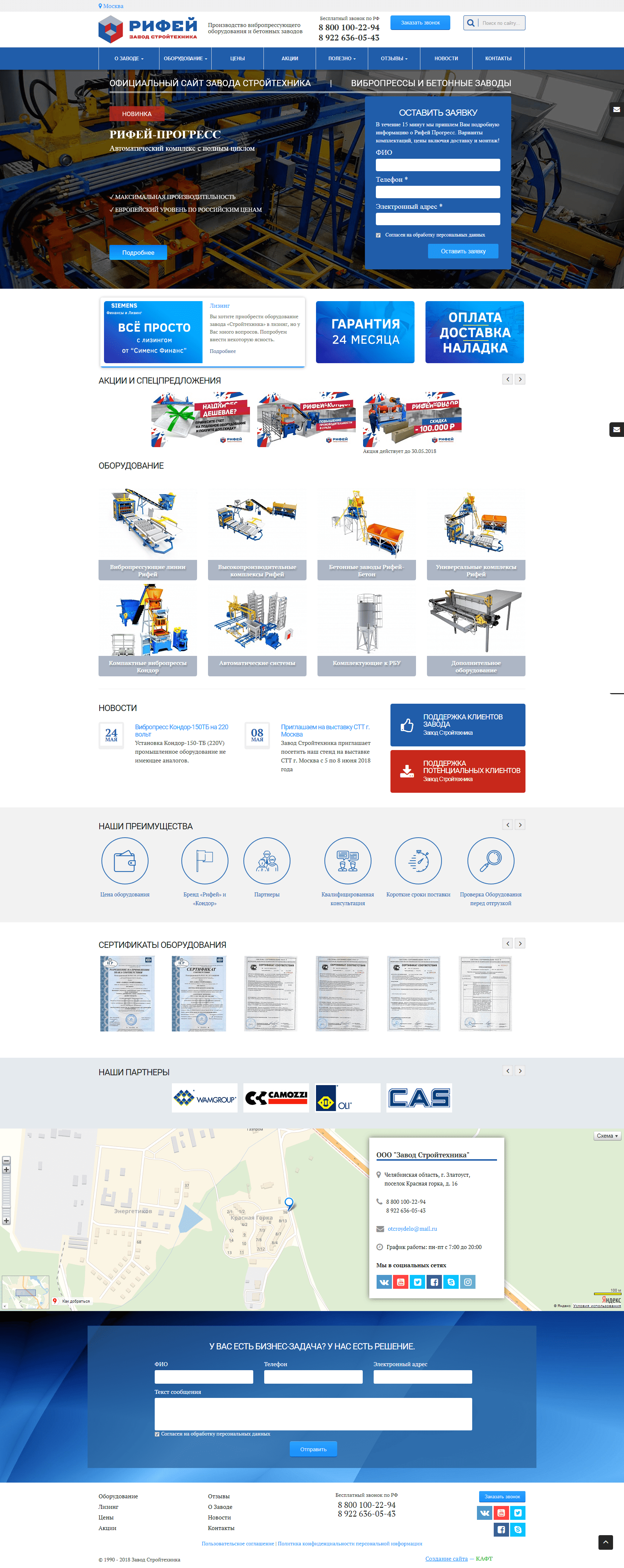 Корпоративный сайт завода Стройтехника Рифей