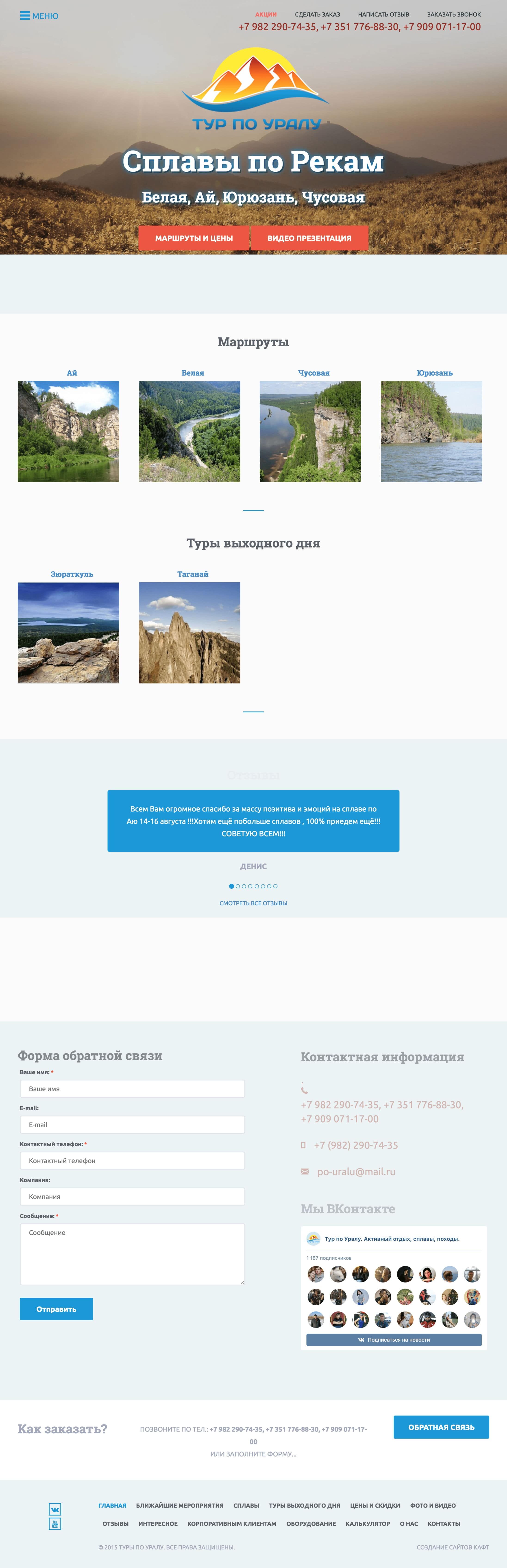 Создан красивый сайт для туристической фирмы "Тур по Уралу".